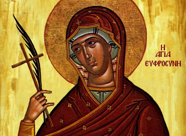 Η Οσία Ευφροσύνη, θυγατέρα Παφνουτίου του Αιγυπτίου, τιμάται σήμερα, 25 Σεπτεμβρίου, μαζί με τον Άγιο πατέρα της. Ήταν μοναχοκόρη και πολύ πλούσια. Ο πατέρας της Παφνούτιος ήταν ο πλουσιότερος της Αλεξάνδρειας και μαζί µε την σύζυγό του διακρίνονταν για την θερµή πίστη τους στο Θεό. Δώδεκα χρονών η Ευφροσύνη έµεινε ορφανή από µητέρα, και ο πατέρας της αφοσιώθηκε ακόµα πιο φιλόστοργα στην επιµέλεια της κόρης του.
