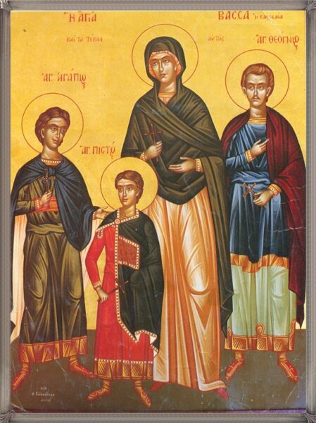 Σήμερα εορτάζουμε τη μνήμη της Αγίας Βάσσης και των τριών παιδιών της Θεογνίου, Αγαπίου και Πιστού.