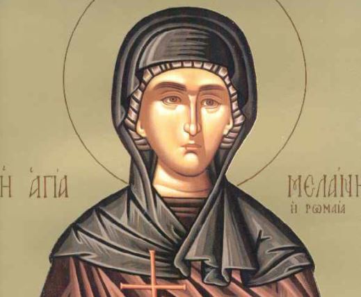 Η Αγία Μελάνη γεννήθηκε στη Ρώμη, γύρω στο 380 μ.Χ. και καταγόταν από αρχοντική οικογένεια. Οι γονείς της την πάντρεψαν σε ηλικία 14 ετών, παρά το γεγονός ότι η ίδια είχε εκδηλώσει την επιθυμία να αφιερωθεί στο Χριστό. Μετά το θάνατο των δύο παιδιών που απέκτησε, καθώς και των γονέων της, έπεισε το σύζυγό της Απελλιανό να ακολουθήσουν τον δρόμο της άσκησης. Διέθεσαν την αμύθητη περιουσία τους για να ανακουφίσουν τους φτωχούς, αλλά και για την ανέγερση ναών και μοναστηριών. Επισκέφτηκαν τους Αγίους Τόπους και τα ονομαστά ασκητικά κέντρα της Αιγύπτου, και έλαβαν ευλογίες και νουθεσίες από γνωστούς ασκητές.