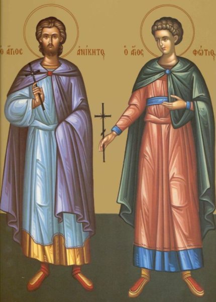 Η Αγία μας εκκλησία τιμά σήμερα τη μνήμη των Αγίων Μαρτύρων Φωτίου και Ανικήτου. Πρόκειται για δύο ένδοξους μάρτυρες της Εκκλησίας που τους συνδέει βαθιά η εν Χριστώ αδελφική-πνευματική συγγένεια, αλλά και η κατά σάρκα συγγένεια.