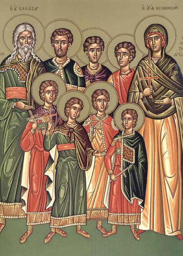 Σήμερα, 1η Αυγούστου, η Εκκλησία τιμά τη μνήμη των αγίων Επτά Μαρτύρων Παίδων, των Μακκαβαίων (Αβείμ, Αντωνίου, Αχείμ, Γουρίου, Ελεαζάρου, Ευσεβωνά και Μαρκέλλου), της μητρός αυτών Σολομονής και Ελεαζάρου (†166 π.Χ.) του διδασκάλου αυτών, καθώς και των εν Πέργη Αγίων εννέα Μαρτύρων (Αλεξάνδρου, Άττου, Ευκλέους, Κατούνου, Κινδέου, Κυριάκου, Λεοντίου, Μηναίου και Μνησιθέου).