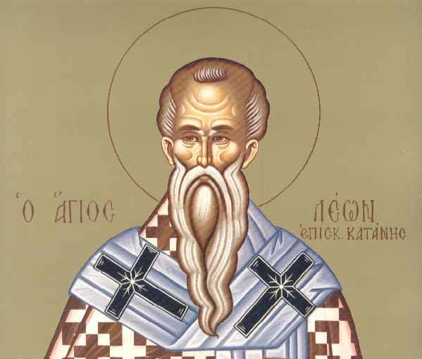 Ο Άγιος Λέων γεννήθηκε στη Ραβέννα από οικογένεια ευγενών και διακρινόταν από την παιδική του ηλικία για τη θερμή πίστη, τον ιεραποστολικό ζήλο και τον ενάρετο βίο του. Χειροτονήθηκε πρεσβύτερος στην πατρίδα του και κατά λαϊκή απαίτηση ανήλθε στον επισκοπικό θρόνο της Κατάνης στη Σικελία.