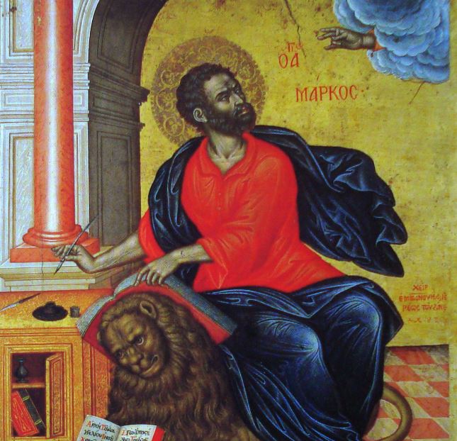 Ο Απόστολος Μάρκος είναι ο ιδρυτής και πρώτος Επίσκοπος της Εκκλησίας της Αλεξάνδρειας. Μετέβη στην Αίγυπτο περί τα τέλη του έτους 62 μ.Χ., ημέρα του Πάσχα. Οι Εθνικοί τον συνέλαβαν, τον υπέβαλαν σε φρικτά βασανιστήρια και τον έριξαν στη φυλακή. Την επόμενη της Κυριακής του Πάσχα, τον έσυραν στους δρόμους της Αλεξάνδρειας και μαρτύρησε, ευχαριστώντας τον Θεό, διότι αξιώθηκε να αποθάνει μαρτυρικά υπέρ του Αγίου Ονόματος Αυτού. Οι ειδωλολάτρες θέλησαν να κάψουν το άγιο λείψανό του σε τόπο που ονομαζόταν «εις τους Αγγέλους», όπου αργότερα ιδρύθηκε και ναός, το λεγόμενο «Αγγέλιον», αλλά λόγω της θύελλας που ξέσπασε με βροχή και χαλάζι, εγκατέλειψαν το ιερό λείψανο και έφυγαν. Οι Χριστιανοί αφού παρέλαβαν με σεβασμό το τίμιο σκήνωμά του το κατέθεσαν σε μνημείο, επί του οποίου οικοδομήθηκε ναός προς τιμήν του. Το ιερό λείψανο του Αποστόλου και Ευαγγελιστού Μάρκου, αργότερα μετακομίσθηκε στη Βενετία.