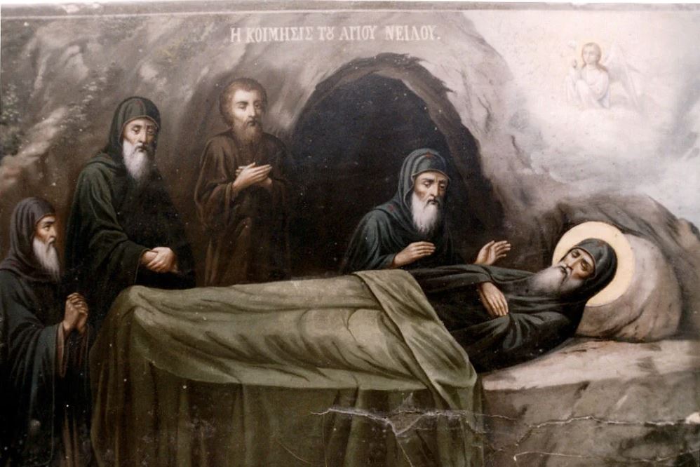 Σήμερα, 12 Νοεμβρίου, γιορτάζει ο Όσιος Νείλος ο Μυροβλύτης, ιερός ναός αφιερωμένος στη χάρη του οποίου υπάρχει στο Χαζτηκυριάκειο του Πειραιά. Η Κάρα του Αγίου θησαυρίζεται στην Ιερά Μονή Μεγ. Λαύρας Αγίου Όρους. Μέρος βραχίονος του Αγίου βρίσκεται στο Κυριακό της Σκήτης Καυσοκαλυβίων Αγίου Όρους και απότμημα του Ιερού Λειψάνου του Αγίου βρίσκεται στη Μονή Παναγίας Μαλεβής Κυνουρίας.