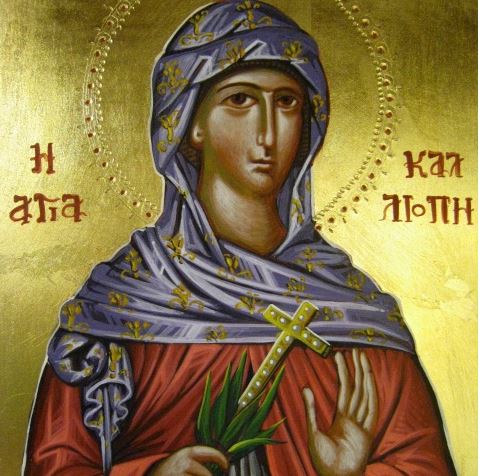 Του Σωτήρος το κάλλος εκ ψυχής αγαπήσασα, καλλιπάρθενε κόρη, Καλλιόπη πανεύφημε, ηγώνισαι στερρώς υπέρ αυτού, και δόξης ηξιώθης θεϊκής, δια τούτο σου την μνήμην την ιεράν, τιμώμεν εκβοώντές σοι, δόξα τω δεδωκότι σοι ισχύν, δόξα τω σε στεφανώσαντι, δόξα τω χορηγούντι δια σού, ημίν πταισμάτων άφεσιν.