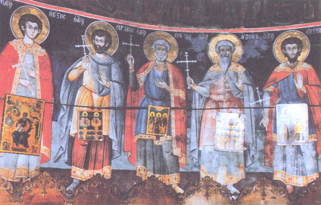 Οι Άγιοι Ευστράτιος, Αυξέντιος, Ευγένιος, Μαρδάριος και Ορέστης μαρτύρησαν κατά το σκληρό διωγμό των χριστιανών επί Διοκλητιανού.