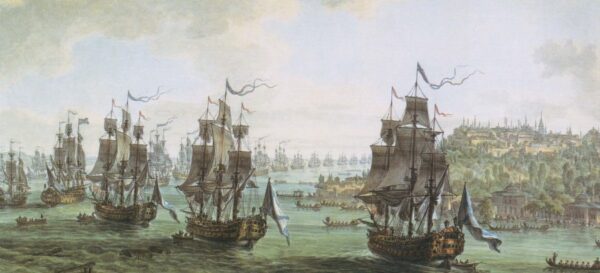 Στο τέλος του 17ου – αρχές του 18ου αιώνα, η Ρωσία είχε στόχο να ξαναποκτήσει τις παραθαλάσσιες περιοχές της Μαύρης Θάλασσας. Το 1775, επί εξουσίας της αυτοκράτειρας Αικατερίνης Β’, αποφασίστηκε να δημιουργηθεί στη Μαύρη θάλασσα τακτικός στόλος. Το 1778, σε απόσταση τριάντα βέρστια από την εκβολή του Δνείπερου, εγκαταστάθηκε η ναυαρχία, ιδρύθηκε το λιμάνι και η πόλη Χερσών. Ξεκίνησαν οι εργασίες κατασκευής των νεωλκείων για τα πλοία, όμως λόγω της δύσκολης μεταφοράς ξυλείας από τις μακρινές περιοχές της Ρωσίας, η διαδικασία αυτή καθυστέρησε πολύ.